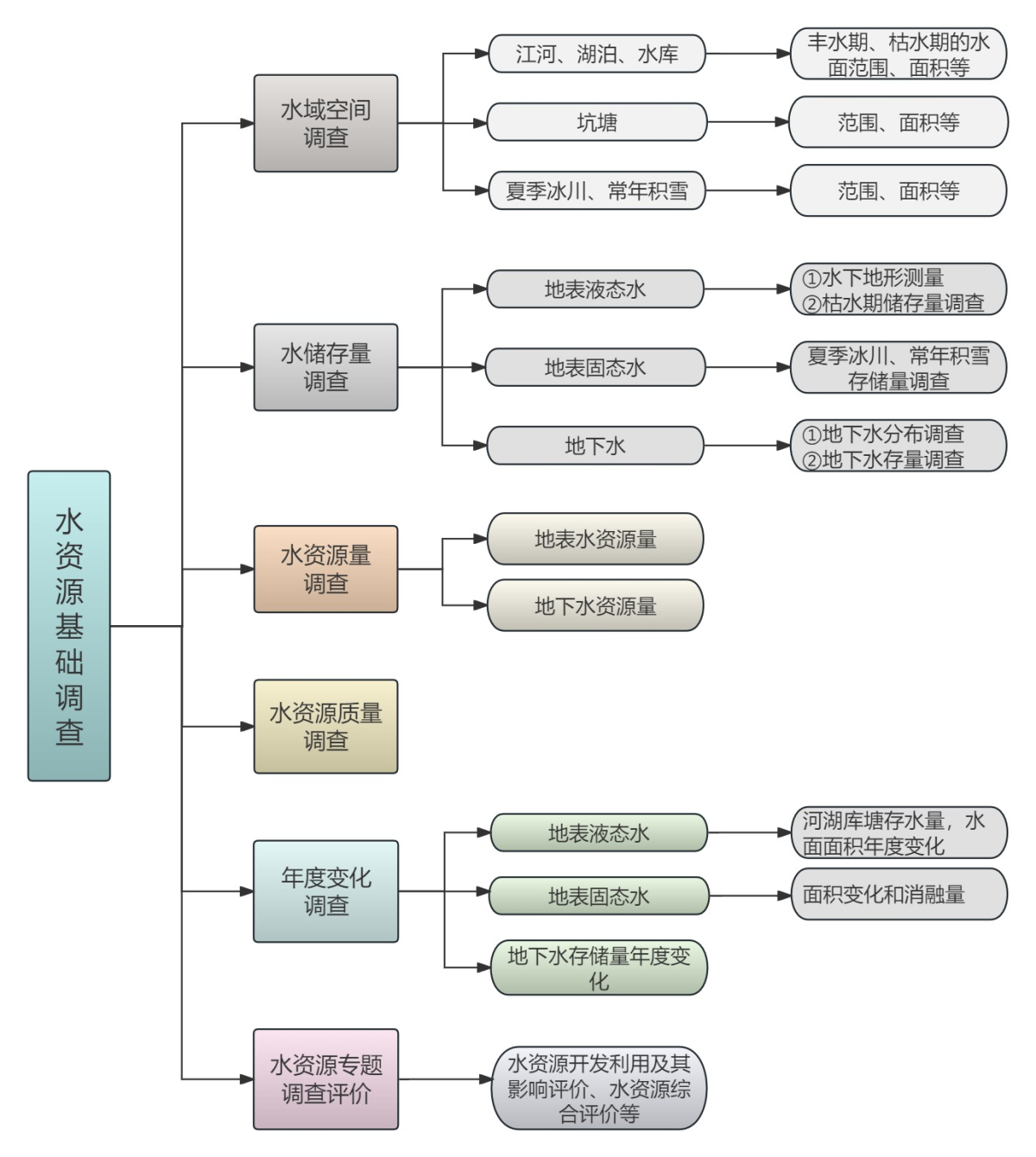 Ë®×ÊÔ´»ù´¡ÊÓ²ìÖÐרÌâÊÓ²ìÄÚÈÝÖ÷Òª°üÀ¨Ë®×ÊÔ´¿ª·¢Ê¹Óü°ÆäÓ°ÏìÆÀ¼Û¡¢Ë®×ÊÔ´×ÛºÏÆÀ¼ÛµÈרÌâÊÓ²ìÆÀ¼Û£¬£¬ £¬£¬ÈçÏÂͼËùʾ¡£ ¡£¡£¡£¡£¡£