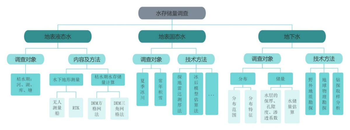 ¶ÔµØ±íҺ̬ˮÖü´æÁ¿¡¢µØ±í¹Ì̬ˮÖü´æÁ¿ºÍµØÏÂË®Öü´æÁ¿¾ÙÐÐÊӲ죬£¬ £¬£¬ÊӲ칤¾ß¡¢ÄÚÈݺÍÊÖÒÕÒªÁìÈçÏÂͼËùʾ¡£ ¡£¡£¡£¡£¡£