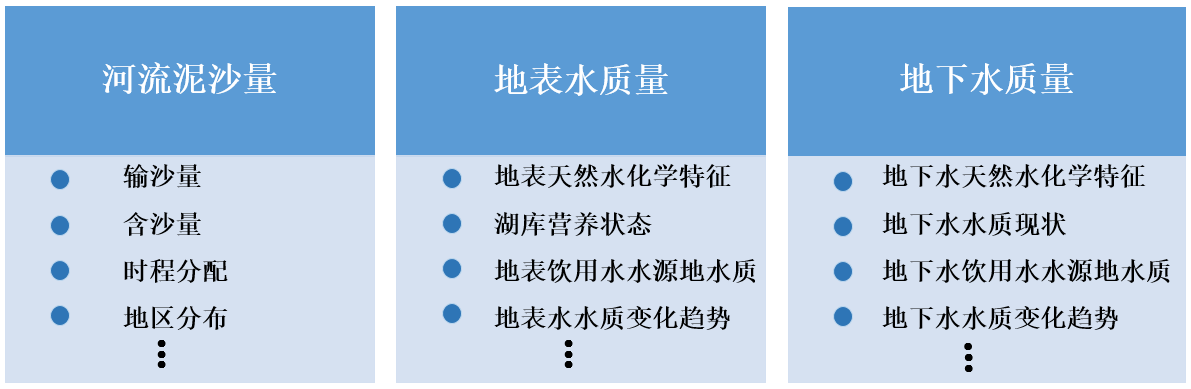 Ë®×ÊÔ´ÖÊÁ¿ÊÓ²ìÄÚÈݰüÀ¨ºÓÁ÷ÄàɳÁ¿ÊӲ졢µØ±íË®×ÊÔ´ÖÊÁ¿ÊӲ졢µØÏÂË®×ÊÔ´ÖÊÁ¿ÊӲ죬£¬ £¬£¬Ö÷ÒªÊÓ²ìÖ¸±êÈçÏÂͼËùʾ¡£ ¡£¡£¡£¡£¡£